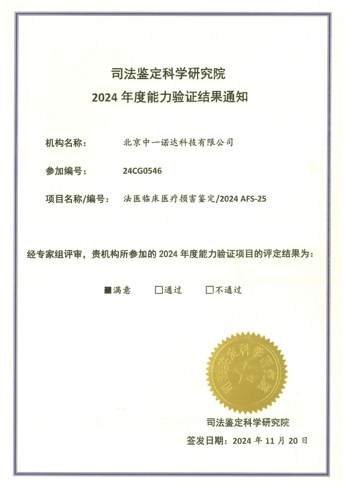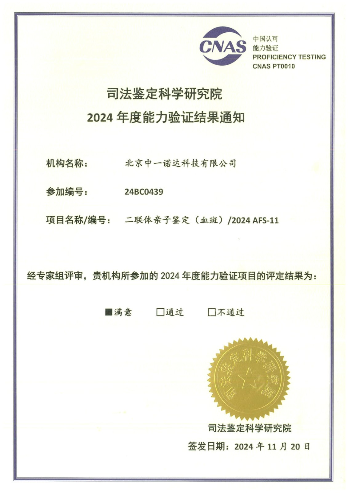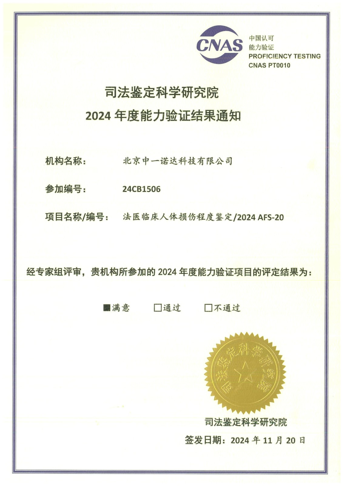 我中心为双证(CNAS和CMA)认可的实验室,所出具的各类鉴定报告均能获得国内以及CNAS国际同盟国的认可,且自成立以来,中心积极提高各方面的检测能力以及实验室的各项能力评定,2020年至今,中心每年均参加司法部司法鉴定科学研究院的能力验证工作,所有项目均为满意的结果,每年还参加北京市公安局组织的内部能力验证活动,也均为满意结果。